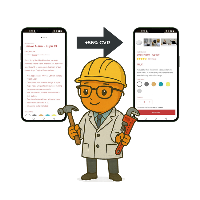Nordic Conversions optimoi Shopify-verkkokauppasi niin, että kävijät ostavat useammin, enemmän ja todennäköisemmin.
